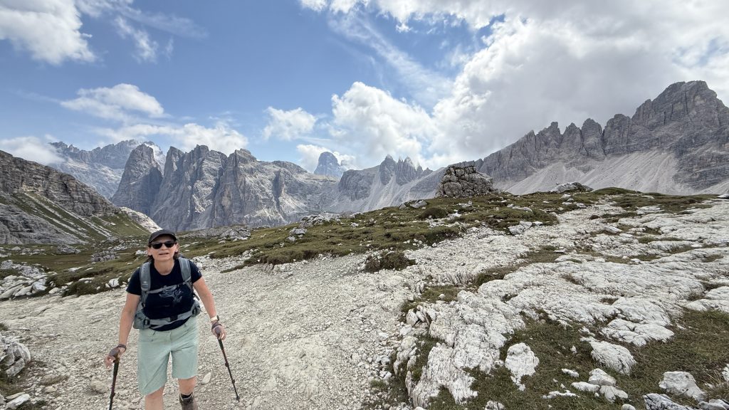 Für Silvia war dies ein besonderer Moment. Sie hatte die Drei Zinnen zwar schon einmal gesehen, jedoch noch nie selbst erwandert. Nun stand sie oben, nahm sich Zeit und genoss minutenlang den Anblick, sichtlich bewegt.