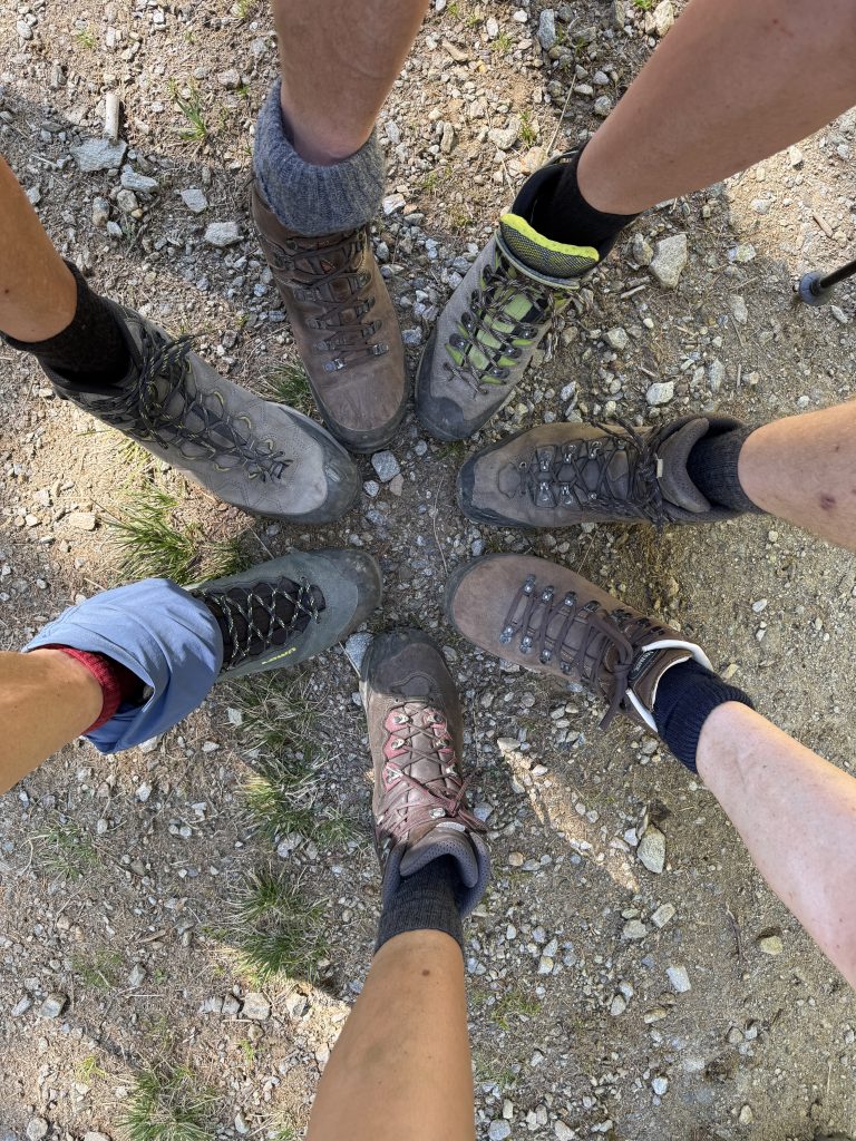 Thema Nummer eins am Tisch: die Planung der letzten beiden Wandertage. Der Wetterbericht versprach am Donnerstag Regen, also beschlossen wir kurzerhand, die Etappen zu tauschen. Ein Problem blieb jedoch: Wie sollten wir unseren morgigen Startpunkt in Südtirol erreichen? Silvias Telefonate mit diversen Taxiunternehmen verliefen erfolglos. Schließlich griff Bernd zur pragmatischen Lösung und fragte in der Küche, ob jemand im Bekanntenkreis Zeit und Lust habe, uns zu fahren. Und tatsächlich: Eine Lösung fand sich. Der Transfer für den kommenden Tag war gesichert – und die Stimmung entsprechend gelöst.
