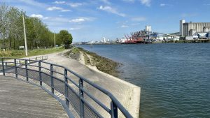Wenn ich die Strecke plane, dann habe ich bei bestimmten Abschnitten eine Vorstellung, wie das dort so aussehen könnte. Da die heutige Strecke ab Rouen an der Seine entlang führte, stellte ich mir einen dieser typischen schönen Radwege vor, wie sie oft an Flüssen zu finden sind. Die erste Hälfte dieser Strecke (ca. 10 km) war dann aber leider eher das Gegenteil. Die Seine ist an dieser Stelle unglaublich intensiv durch Industrieanlagen bebaut. Der Radweg (immerhin gab es einen – den ersten und einzigen heute) verlief an einer Straße durch diese Industriegebiete. Über Raffinerien, Kraftwerke, Siloanlagen für die Landwirtschaft und vielen anderen Betrieben war eigentlich alles vorhanden, das man sich vorstellen kann – nur schön war es überhaupt nicht. Das legte sich erst auf dem 2. Teil dieses Abschnitts und so, wie ich es mir vorgestellt hatte. Nach fast 20 km an der Seine war eine Fähre zu benutzen. Nach den Erfahrungen in Holland vor einigen Tagen, hatte erkundigte ich mich diesmal vorher, ob die Fähre auch tatsächlich fuhr.