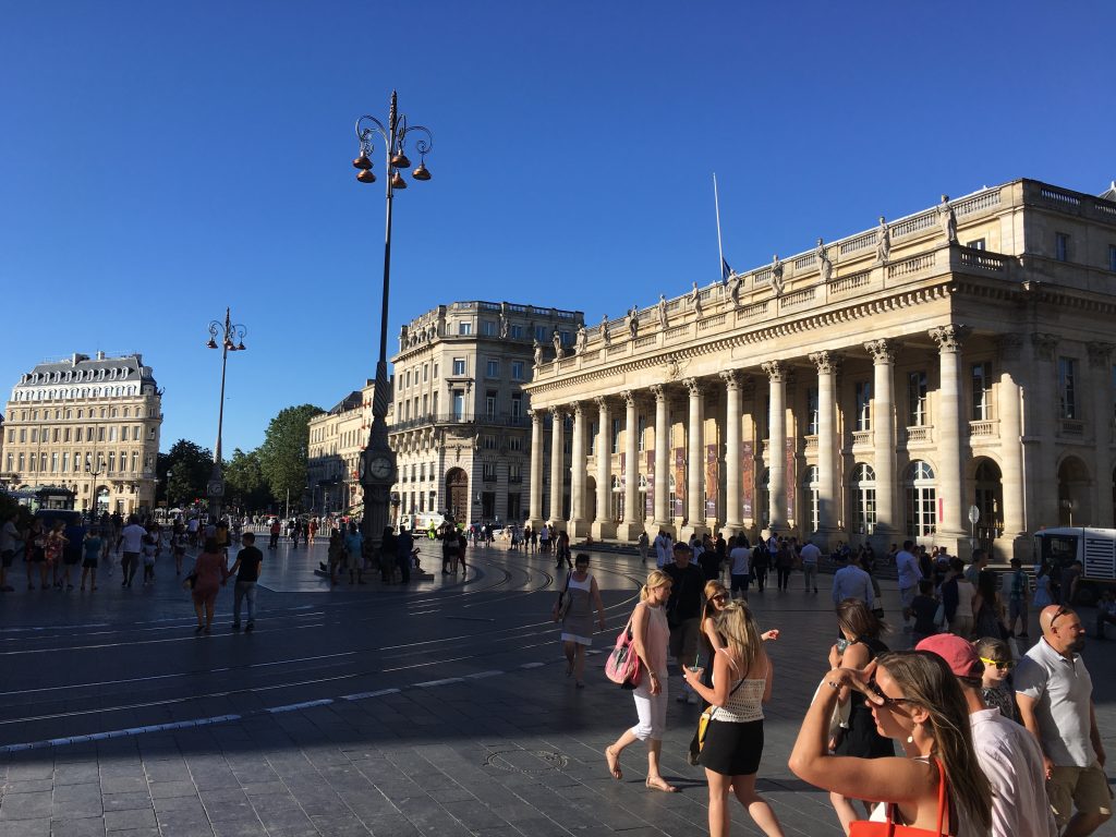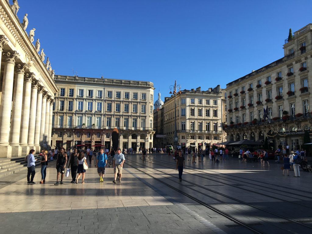 Die erhoffte kürzere Reisezeit gegenüber dem Zug stellte sich dann doch nicht ein, da offenbar aufgrund der Ferienzeit eine Menge Leute die Idee hatten, an die Küste zu fahren. Etwa 2 Stunden habe ich im Stau gestanden, bevor ich dann den Wagen abgeben konnte. Anschließend suchte ich mir erstmal ein Cafe, um den weiteren Tag zu planen. Da es in der Zwischenzeit mit über 30 Grad recht heiß wurde und ich Bordeaux nicht verlassen wollte, ohne zu zumindest mal einen  Blick in die Stadt geworfen zu haben, beschloss ich die Nacht hier zu bleiben.
