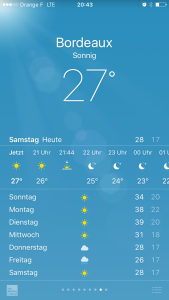 Ja das war es dann auch zum ersten Abschnitt der Reise. Nach dem ich mich von Sylvia am Bahnhof verabschiedet habe, bin ich dann auch zügig ins Auto und Richtung Bordeaux gefahren. Die ersten 50 Kilometer dachte ich nur – was  ist das hier auf einmal eben und wo sind die Hügel, die uns in den letzten Tagen manchmal sehr gequält haben. Nach 50 km ging es dann aber bis kurz vor Bordeaux in gewohnter Weise durch hügelige Landschaften.
