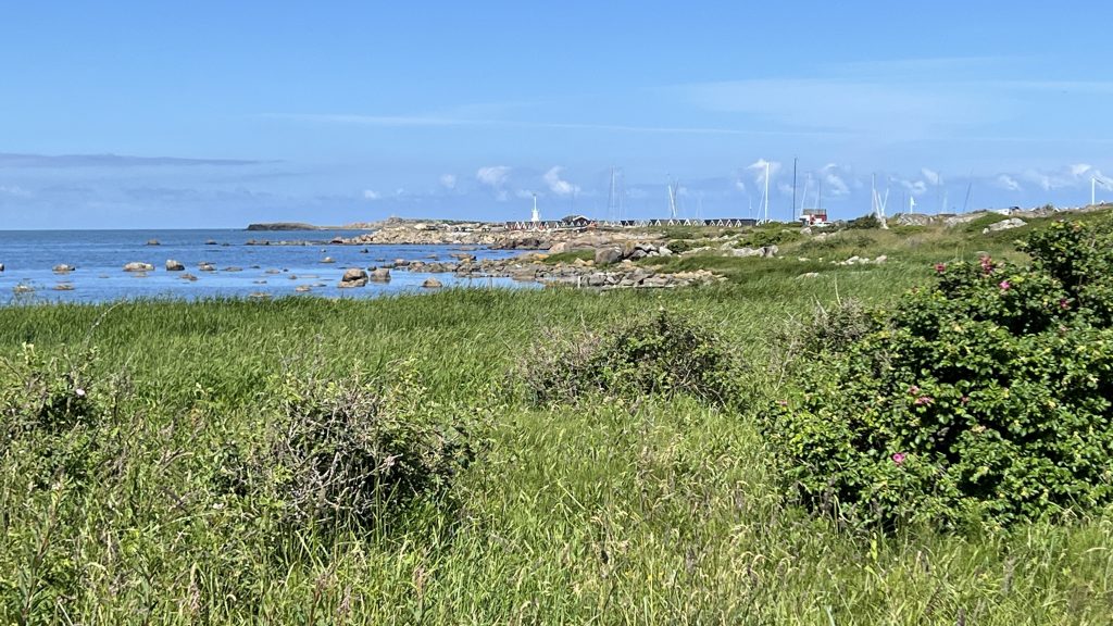 Gut gestärkt machten wir uns am Nachmittag dann an die letzten rund 36 km. Zumindest dachten wir das. Nach etwa 20 km. Fiel mir an einer Abzweigung auf, dass der Zielort bereits hinter uns liegen soll. Da ich mir aber nicht ganz sicher war, überprüfte ich alles nochmal und stellte fest, dass ich mich am Morgen bei der Zieleingabe versehen hatte und wir ca. 5 km zurück fahren mussten. Sylvias Begeisterung hielt sich in Grenzen, sie hielt sich aber tapfer. Allerdings meinte Sie, dass ich wegen des zweiten Fehlers binnen 24 Stunden wohl Urlaub vom Urlaub benötige. Nun, wenn dem so sein sollte, dann sind wir ja praktisch schon auf der Rückreise. So erreichten wir doch recht zeitig die gebuchte Unterkunft und wurden sehr freundlich mit einem erfrischenden Getränk begrüßt. Da wir aus besagten Gründen die einzigen Gäste waren, hatten wir auch den ganzen Gastbereich für uns. Als Konsequenz für die kurze Strecke heute, müssen wir morgen nach Göteborg noch etwa 83 km strampeln. Da der Wind wieder etwas kräftiger aus Südwest blasen soll, wird das aber hoffentlich bis zum Ende des Check-Inns gegen 18 Uhr gut zu schaffen sein. Hier noch ein paar Eindrücke vom heutigen Tag: