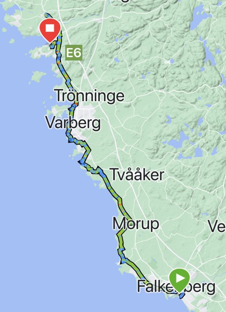 Und so machten wir uns gut gelaunt auf den Weg. Dabei wurden wir heute den ganze von der Sonne begleitet. Nach den letzten Tagen eine echte Wohltat. Schon nach kurzer Strecke erreichten wir dann den Küstenradweg „Kattegattsleden“, dem wir heute den ganzen Tag folgten.