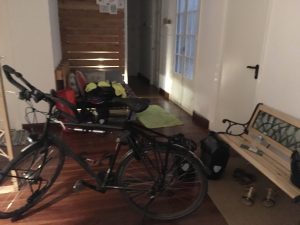 Nachdem ich dann das Fahrrad und Gepäck in 3 Gängen wieder runter getragen und aufgesattelt hatte, konnte ich dann die sagenhafte Strecke von 2 km zum Autoverleih antreten.