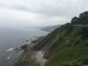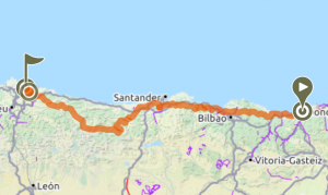 Da das Fahrzeug leider kein Navi hatte und ich mit dem Garmin, das auf Fahrradnavigation eingestellt ist, nicht schon wieder Anfangsschwierigkeiten provozieren wollte, vertraute ich meinem Orientierungssinn und der klassischen Methode mit Karte. Problem war nur der Maßstab der als Übersichtskarte von Spanien und Portugal gedachten Orientierungslösung. So waren viele der auf den Schildern benannten Orte auf der Karte nicht verzeichnet. Irgendwie gelang es mir dann doch Richtung Bilbao zu folgen und ich schaffte es dann sogar nicht der Hauptstraße sondern der angedachten Nebenstrecke, direkt am Atlantik zu folgen. Eine Klasseroute, bei der ich dann auch nachvollziehen konnte, wie die errechneten 4.500 Höhenmeter zustande kamen.
