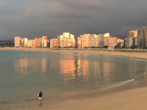Kurzer Nachtrag noch zu Gijon: Dies ist eine weitere nette Küstenstadt am Atlantik, die man einmal gesehen haben sollte und reiht sich nahtlos ein in die schönen Eindrücke, die ich in den Vortagen in anderen Städten gewonnen habe. Auch hier findet man eine schöne Altstadt, mit netten Plätzen auf denen ein buntes Treiben herrscht. Nette Restaurants und Bars gibt es an jeder Ecke. Die Preise sind normal. Vor dem Stadtzentrum liegt ein schöner langer Sandstrand und davor eine tolle Promenade.