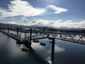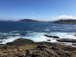 So nach 5 km habe ich das Navi dann abgeschaltet, weil es mich immer wieder in die umliegenden Hügel führen wollte und nicht wie von dem jungen Mann empfohlen an einer mäßig befahrenen recht flach verlaufenden Hauptstraße entlang, die auch noch über eine abgegrenzte Spur für Radfahrer und Fußgänger verfügt (das ist hier nicht überall selbstverständlich). Diese Strecke zählte – insbesondere nach der Frühstückspause, die ich nach 26 km in Baiona gemacht habe, dann auch zu den schönsten, die ich je gefahren bin. Ich hätte jeden km anhalten können, um Bilder zu machen. Hier ein paar Eindrück: