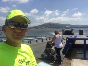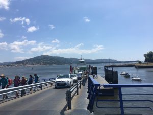 Mit mir setzten noch einige deutsche Urlauber über, die scheinbar in einer Clubanlage wohnen und mit einem Guide eine geführte Tour mit Mountainbikes machten (teilweise mit E-Mountainbikes!!??). Interessant ist, dass wir in Deutschland überwiegend E-Bikes gesehen haben, in Frankreich nur noch sehr wenige davon und in Spanien waren die von den Deutschen gefahrenen, die einzigen, an die ich mich erinnern kann.