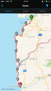 Nach den beiden Autoetappen gestern und vorgestern wurde es dann heute wieder ernst. Nach gut 86 km erreichte ich mein heutiges Ziel Viana do Castelo.