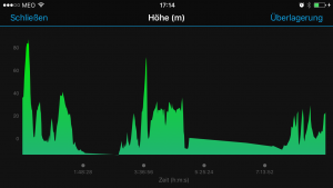 Wie das Höhenprofil des heutigen Tages zeigte, ging es die ersten 500-600 m hinter dem Hotel erstmal mit 10 bis 11 % Steigung in die Höhe – damit war der Puls direkt am Anschlag und das 2 Tage vorher mühsam gewaschene Sportshirt wieder klitschnass. Die Strecke führte dann durch den Berufsverkehr raus aus der Stadt (war wieder kein echtes Vergnügen -aber das gehört wohl dazu).