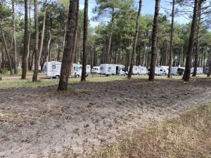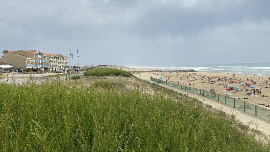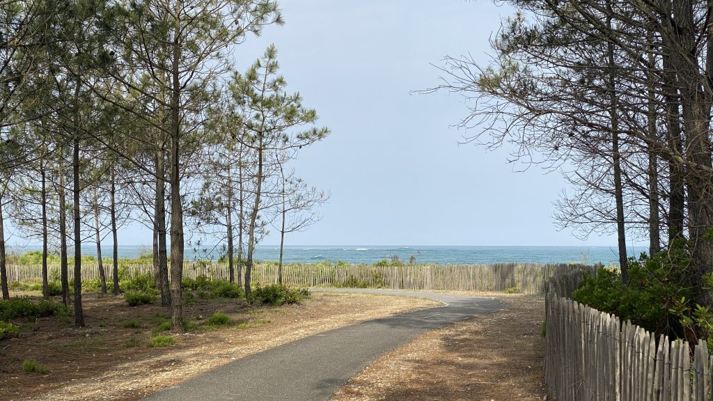 Nach diesem kleinen Abstecher ging es dann weiter auf dem EV 1 Richtung Süden. Mit Ausnahme der Teilstücke, wenn die Strecke direkt an einer Straße entlang führt, war es wieder eine traumhaft schöne Route durch die Dünenwälder hier am Atlantik. Schön ist, dass die gesamte Küste nur sehr selten etwas intensiver durch Orte bebaut ist. Meist sieht man nur Wald oder vorsichtig in den Wald integrierte Campingplätze und Hütten.