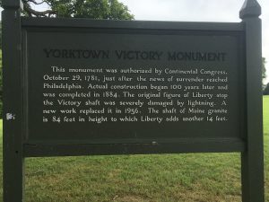 Nach einer guten halben Stunde kam ich dann in Yorktown an und sucht das Victory Monument, den eigentlichen Startpunkt der TransAm. Auf dem Weg dorthin habe ich mich doch über mich selbst geärgert, dass ich nicht spätestens gestern hierher gefahren bin. Yorktown ist ein netter kleiner Ort, mit vielen historischen Gebäuden und liegt direkt am Wasser. Zudem bin ich an einigen kleinen B&Bs und Restaurants vorbei gefahren. Das Monument war nicht besonders schwer zu finden. Leider war weit und breit kein Mensch zu sehen, der von mir ein Foto hätte machen können – naja wir leben ja eh im Selfiezeitalter.