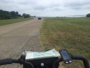 Ja und dann ging es endlich los mit der TransAm. Da ich die letzten 4 km bereits auf der Strecke gefahren bin, konnte ich auch gut ohne Karte fahren. Die Strecke ist mäßig befahren, die Straße (ohne Markierung) ist breit genug für 4 Fahrstreifen. Nach Yorktown geht es dann über den Colonial Parkway abwechselnd durch Wälder und an Mlitäreinrichtungen vorbei.