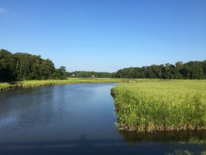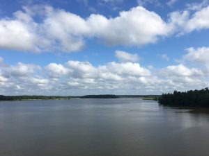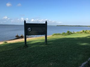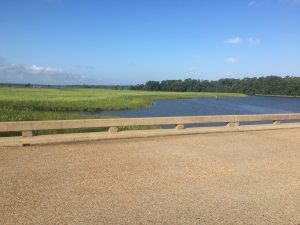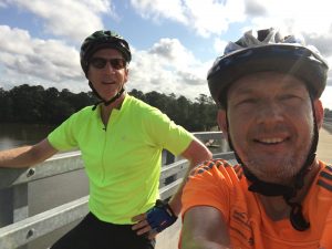 In Jamestown endete dann der Colonial Parkway nach ungefähr 16 km. Ab dort hieß die Route, der ich folgen musste „Capital Trail“. Da ich etwas Probleme hatte, den Einstieg zu finden (offenbar hat sich die Route seit Erstellung der Karten leicht geändert) fragte ich einen auf einem Rennrad vorbeifahrenden Mann. Der erklärte mir den Weg und bot an, mich ein Stück zu begleiten, da er ohnehin in die Richtung will. So fuhren wir dann 10 km gemeinsam. Ein sehr unterhaltsamer Abschnitt des heutigen Tages. Auf der Brücke über den Chickahominy River drehte er dann um und ich fuhr weiter, nicht jedoch ohne vorher ein Bild gemacht zu haben.