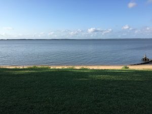 Ich wäre auch schon um 6:30 abfahrbereit gewesen, es gab jedoch erst ab 7 Uhr Frühstück. Der Jetlag treibt mich doch recht früh aus den Federn (heute morgen um 5). Der Weg führte mich direkt wieder auf den Colonial Parkway und dann ein kleines Stück durch den historischen Stadtteil, den ich gestern ja schon gesehen hatte. Anschließend ging es dann auf dem Parkway Richtung Jamestown, der dritten Stadt des „historic Triangle“. Der Weg dorthin war traumhaft, ich hätte jede Minute ein Bild machen oder besser gleich ein Video drehen können. Die Straße war wenig befahren und südlich der Strecke lag lange Zeit der James River von Norden gab es immer wieder kleinere Zuläufe in den Fluß – die Creeks mit unterschiedlichster Bezeichnung. Das ganze wurde noch von strahlendem Sonnenschein und (noch) mäßigen Temperaturen garniert – einfach nur schön. Hier ein paar Eindrücke, die sicher das Gefühl, dort zu fahren nur sehr eingeschränkt wieder geben können.