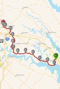 Nach 115 km und 482 Hm war ich heute an meinem Ziel in Mechanicsville, nördlich von Richmond. Es war eine gute Entscheidung, gestern in Williamsburg geblieben zu sein. Zum einen wäre die Strecke gestern ansonsten fast 150 km lang gewesen und ich wäre dazu am Nachmittag in ein starkes Unwetter gekommen, bei dem ich sicher von der Umgebung nicht viel gesehen hätte.
