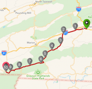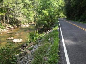 Die Strecke verlief zunächst ein Stück an der Interstate entlang und danach weitgehend über Nebenstrecken und wenig Verkehr. Unglaublich, was für eine Geräuschkulisse so eine Interstate (Autobahn) entwickelt, wenn man kurz davor oder danach den direkten Vergleich mit einer Nebenstrecke meist ohne Verkehr hat. Auf den Nebenstrecken sah ich heute viele Rehe und Hirsche über die Straße hüpfen – mir war nie so richtig bewußt, wie elegant sich diese Tiere durch den Wald bewegen. Kurz danach sah ich dann die erste Schlange am Straßenrand liegen. Ich habe nicht geprüft, ob sie noch lebt. Mein Respekt vor diesen Tieren ist nicht unerheblich. Ein paar Eindrücke von diesem teil der Strecke: