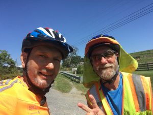 Gegen 11:00 Uhr machte ich mich auf den Weg zum Treffpunkt, wo ich mich mich Anna-Lena und Alex treffen wollte. Die Strecke war mit gut 20 km recht überschaubar. Ich wollte aber in jedem fall pünktlich sein, weil die beiden ja noch nach Washington weiterfahren müssen. Auf dem Weg dorthin traf ich Frank aus Californien, der den Trail nach Osten fährt. Er gab mir noch ein paar Tips zu Übernachtungsmöglichkeiten für die nächsten Tage. Langsam fühle ich mich doch nicht mehr als alter Sack (Frank ist 58).