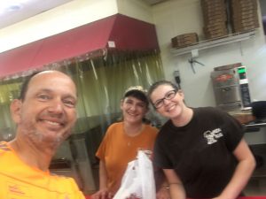 Man muss sich das wirklich so vorstellen. Dort gibt es praktisch nichts. Man sieht keinen Menschen. Keine Verbindung zur Außenwelt. Ich schwankte kurz, habe mich dann aber entschlossen, mein Lager auf einer Isomatte im Besprechungsraum aufzuschlagen. Ich packte meine Sachen in den Raum und fuhr dann noch 4 km weiter in den nächsten Ort, um etwas zu essen. Dort gab es an einer Tankstelle (bin ich ja schon gewohnt) eine wirklich ordentliche Pizza und sogar mit Sitzen und Tischen (Begeisterung). Die Bedienung, die unbedingt wissen wollte, woher ich komme und was ich mache, verfolgte meine Ausführungen mit großen Augen und sagte bestimmt alle 3 Sekunden „awesome“. Und dann bestand Sie noch auf ein Selfie.