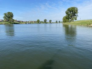 Der Tag begann sehr schön mit einem guten Frühstück in der zum B&B gehörenden Teestube. Vorher hatte ich schon die nächste Unterkunft reserviert, die Strecke geplant und alles in das Navi eingegeben. Plötzlich bekam ich jedoch eine Nachricht von der für die kommende Nacht reservierten Unterkunft. Leider kann man uns nicht aufnehmen, da man die Zimmer derzeit sanieren läßt. Man hat leider vergessen, die Zimmer für Booking zu sperren. So begann die Procedur der Buchung und Reiseplanung dann kurz vor der geplanten Abfahrt nochmal von vorn. Gegen 9:15 Uhr machten wir uns dann aber endgültig bei erneut strahlendem Sonnenschein auf den Weg. Da die geplante Strecke heute 3 Fährpassagen vorsah, haben wir uns nach den Erfahrungen von gestern natürlich bei der Betreiberin des B&B vor Abfahrt nochmals vergewissert, dass alle auch tatsächlich fahren. Sie wies aber darauf hin, dass man die ersten beiden Fähren auch sehr schön umfahren kann, in dem man den Weg an einer sehr schönen Seenlandschaft entlangfährt. Genauso haben wir es dann auch gemacht. Anschließend fuhren wir dann über lange Strecken immer auf dem Deich in Sichtweite der Maas. Immer wieder kamen wir dabei durch nette kleine Orte.