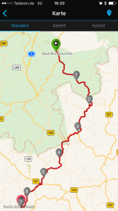 Während der Mittagspause haben wir uns entschlossen nur bis Gerolstein zu fahren und unseren müden Beinen und dem geschundenen Hinterteil ein wenig Erholung zu können. Der Versuch, ein Hotel zu finden scheiterte direkt am fehlenden Netz. Was soll man auch von Orten erwarten, in denen man kaum etwas zu esssen findet.