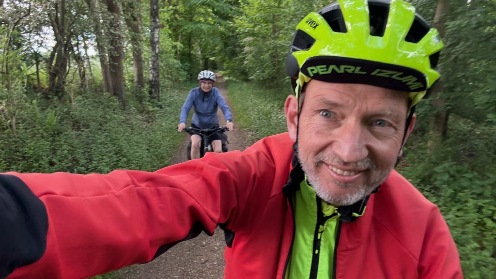 Die dominierende Farbe dieser Gegend ist grün – viele Felder und Wälder. Da die Farbe grün beruhigend wirkt, war dieser Tag ein wenig wie eine Seelenmassage. Immer wieder führte uns der Weg über kleine Strassen, Wald – oder Feldwege. Auch die wenigen nicht asphaltierten Passagen waren gut zu fahren. Nur an einer Stelle war der Weg so sandig, dass mein Rad einmal Grundberührung hatte, ohne dass ich dabei aber selbst gestürzt bin (sh. Titelbild).