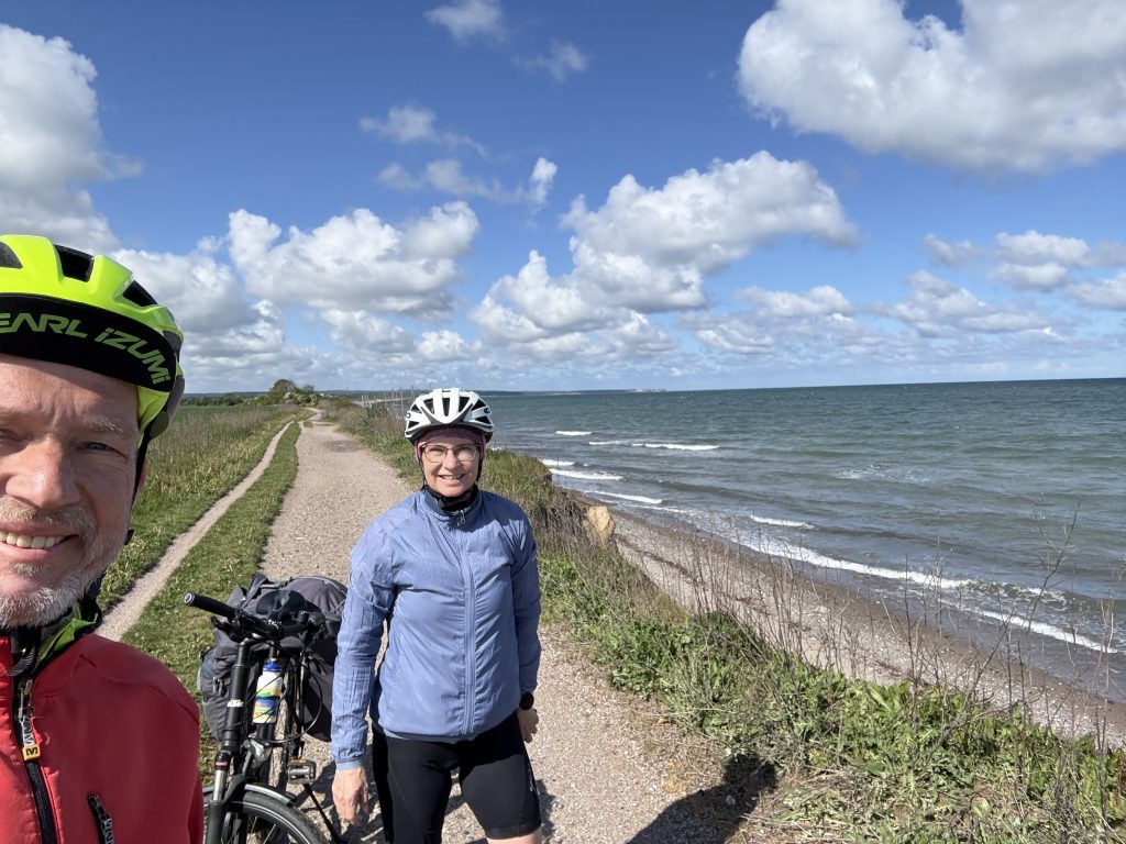 Die ersten Kilometer auf dem Ostseeradweg Richtung Warnemünde waren vertraut – zumindest von früheren Aufenthalten. Allerdings waren wir bisher immer im November hier. Damals: kahle Bäume, leergefegte Wege, Ostsee in Grautönen. Heute: sattes Grün, lebhafte Wege, ein fast mediterran wirkendes Lichtspiel auf dem Wasser. Dazu ein kräftiger Westwind im Rücken, der uns freundlich schob – das Radlerherz lacht bei solchen Bedingungen.